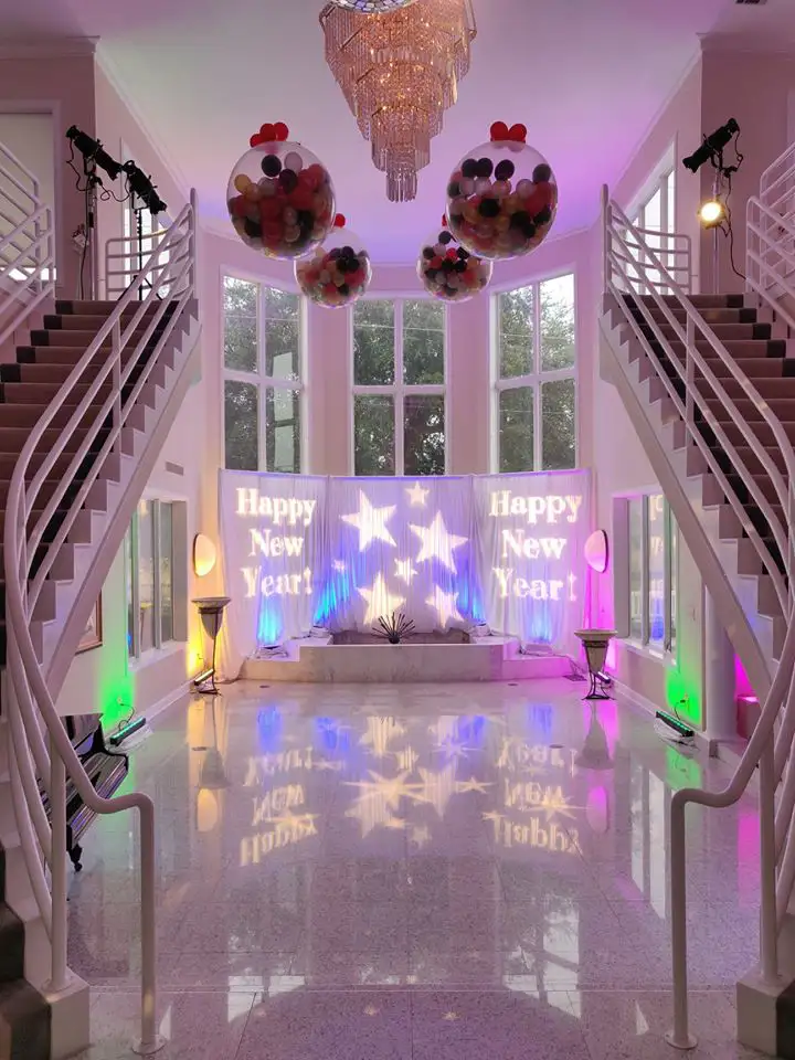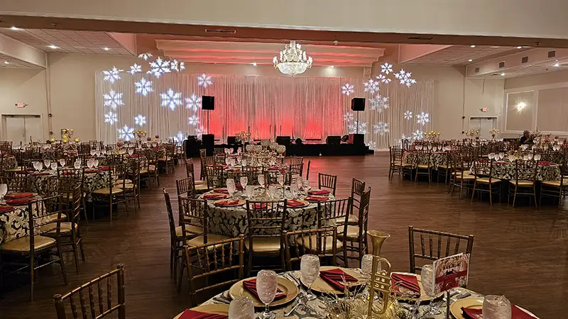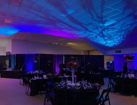 Gobo lighting is another standout element of special event lighting. A “gobo” is a stencil or template that fits over a light fixture to project a specific pattern, logo, or design onto a wall, ceiling, floor, or backdrop. Add a personal touch to your event with Gobo lighting, perfect for projecting patterns, logos, or monograms.