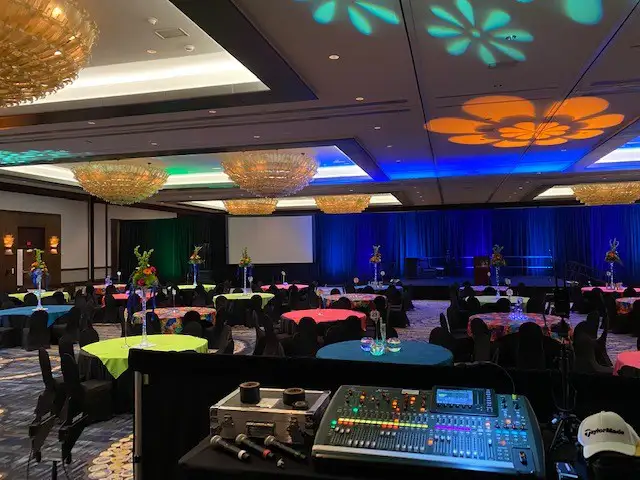 - Custom Color Themes: LED uplights can be programmed to match your brand colors or event palette.